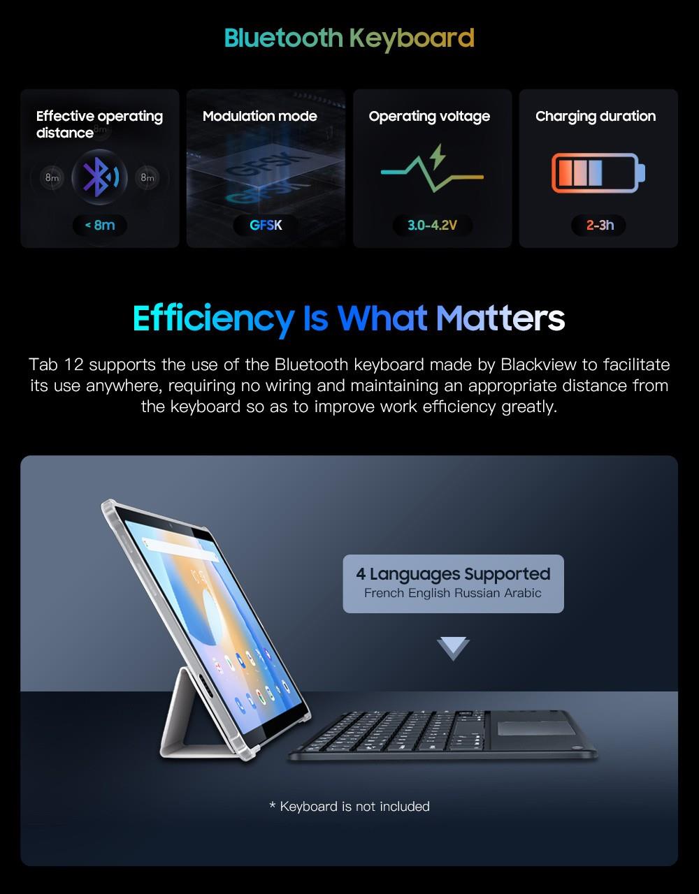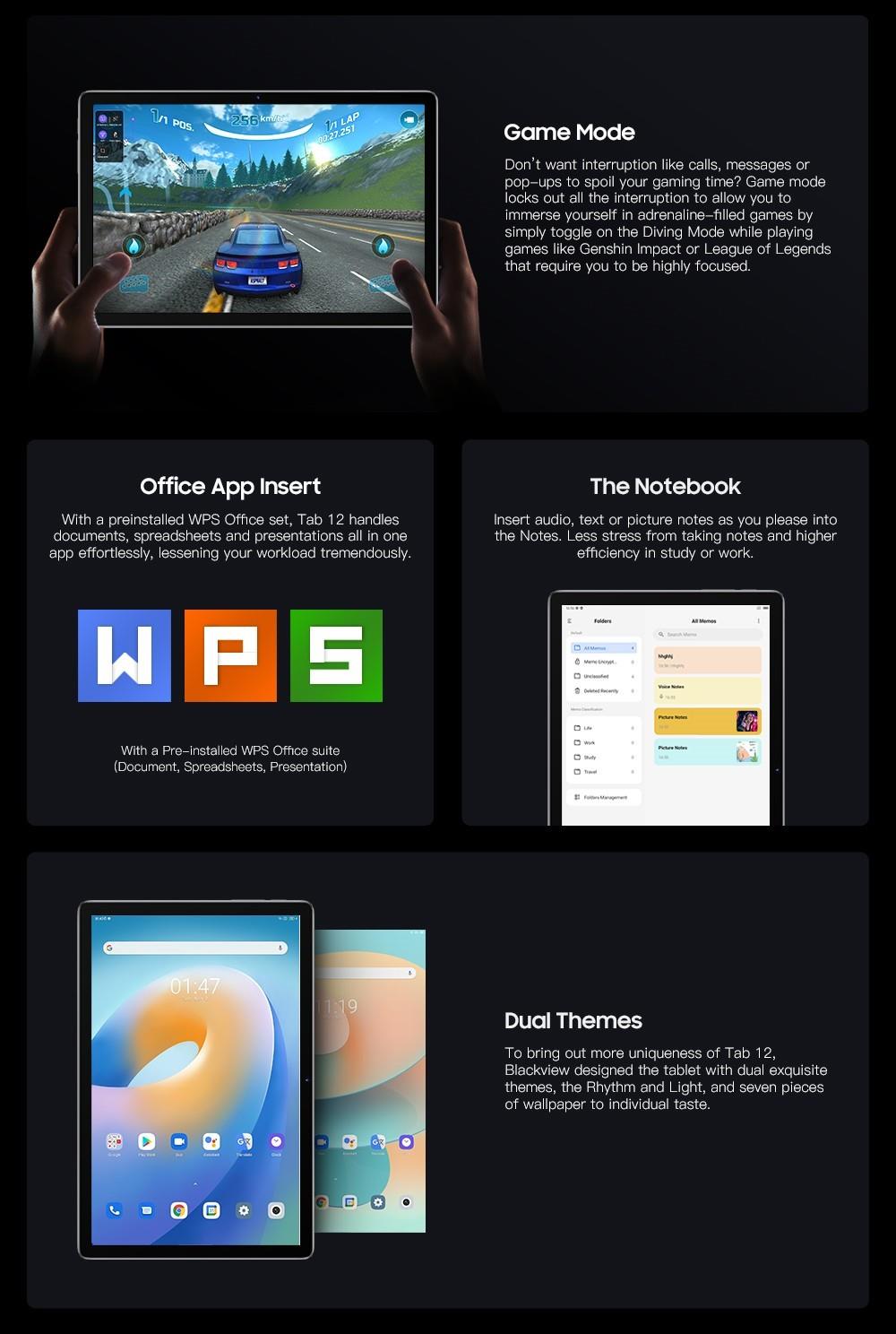 Blackview Tab 12 tablet comes with 4GB RAM and 64GB internal storage, expandable storage up to 512GB. It has plenty of space, keep all your favorite media with you wherever you go.