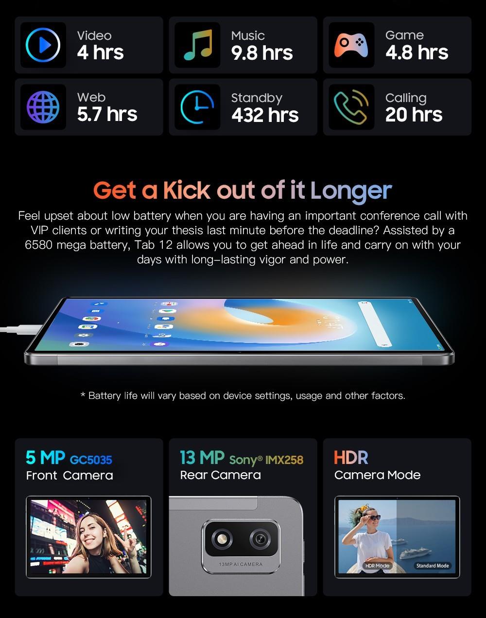 Blackview Tab 12 tablet never misses wonderful moments, With the flagship 13MP camera, you can unlock your inner desire for photography, and the 5MP Front allows you to make smooth video chats.