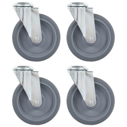 This set of 4 bolt hole swivel casters will be the perfect accessory for small equipment and furniture like workbench, trolley, coffee table, plant stand, bookshelf, shopping cart, etc. These casters are made of TPR (thermoplastic rubber) which is distinguished by a good shock and vibration resistance, enabling these casters to run smoothly and quietly. Additionally, their soft surfaces effectively protect your floor from scratching. Besides, the zinc-coated iron frame is highly rust-resistant and thus adds to the catser's sturdiness and durability. Each caster has a maximum loading capacity of up to 80 kg. Delivery includes 4 bolt hole swivel casters.