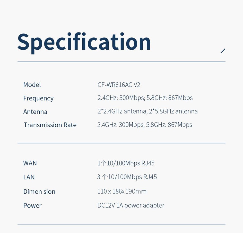 Specification Supports IEEE802.11ac/a/b/g/n standards