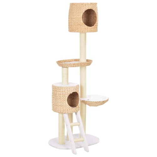 With this handmade cat tree, your cats can scratch, perch, climb, as well as relax to their heart's content. Thanks to its cute and compact design, this cat tree will perfectly suit any decor. The cat scratching tree will also give your tiny friends the chance to stretch and exercise, especially in the cold winter months when they are stuck indoors. The scratch poles are wrapped in sisal rope, which is exceedingly comfortable and convenient for your feline friends to sharpen their claws. Additionally, our cat tree is designed with 2 cosy houses and 2 baskets for your cat to have a nap or take a load off. Besides, it also boasts removable cushions for your cat to lie in cosily. This seagrass cat tree is easy to assemble and maintain.