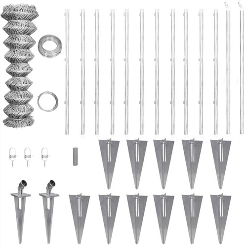 This galvanised chain-link fence will provide an excellent barrier for gardens, parks, zoos, sports yards, roads and pools. This chain-link fence is made of high quality galvanised steel for strength and durability. Our weather-proof and corrosion-resistant fence set will protect your garden or patio from unwanted guests. Thanks to the included galvanised anchor spikes for the posts, it's very easy to install. All necessary mounting accessories are included in the package! Delivery includes 1 galvanised chain-link fence, 11 galvanised fence posts, 11 galvanised anchor spikes for the fence posts, 2 galvanised diagonal posts, 2 galvanised anchor spikes for the diagonal posts, 1 top wire, 1 binding wire and 3 wire tensioners.