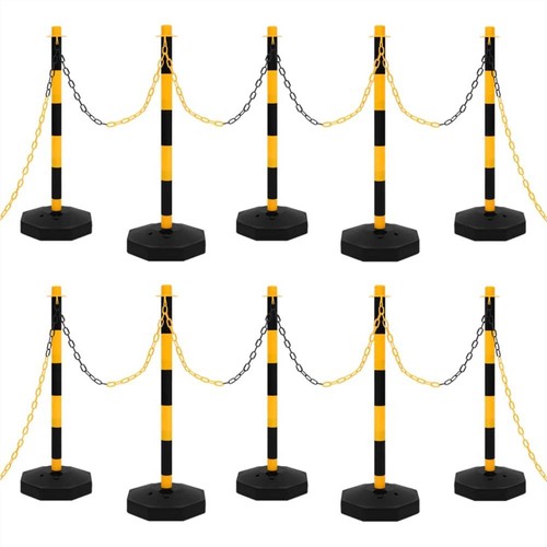 This chain post set is designed as an economical but effective means to restrict certain areas. It is suitable for car parks, warehouses, public spaces, and private roads, etc. The 10 m plastic chain can be easily attached to the traffic posts to create a restricted area. The set is light in weight, thus very portable. For added stability, the included base can be filled with water or sand. The bright colours make the traffic post set highly visible even in the low light.