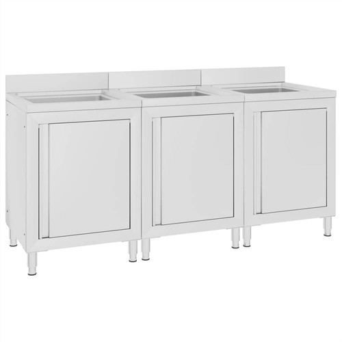 If you want to keep your kitchen spic and span, this commercial sink cabinet set is a perfect choice for you. It can be widely used in restaurant, hotel, food production, gastronomy use or garage, workplace and home use. Made of quality stainless steel, this cabinet is robust, anti-corrosive and easy to clean. Bottom cabinet provides ample storage space for cleaning equipment and accessories. Adjustable feet keep the cabinet level on uneven floors. It also includes a 10 cm back splash and water pipe hole. You can find the commercial sink cabinet, drainboard cabinet and work table cabinet of 60x60x96 cm in our webshop. They can be connected with each other to meet your specific needs. Assembling accessories are included in delivery.
