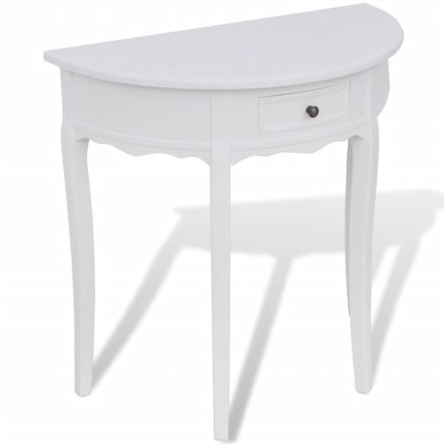 This sturdy and durable console table will make a great addition to your living room, dining room, or hallway. The table combines quality workmanship and functionality. Thanks to its compact design, our console table occupies very little space. The drawer provides you with additional space for your belongings. This durable console table is constructed from high-quality MDF and pine, and has a white paint finish.