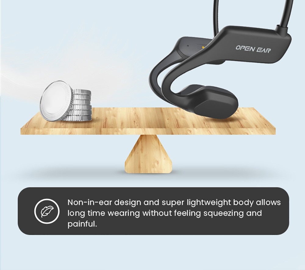 | Specification | Bluetooth: BT V5.2 Connection Distance: about 10 meters Battery Capacity: 180mAh Playing Time: about 7 hours Talk Time: about 6 hours Charging Time: about 2 hours Material: ABS+PC+Titanium Alloy Belt Wearing Method: Hanging Ear |