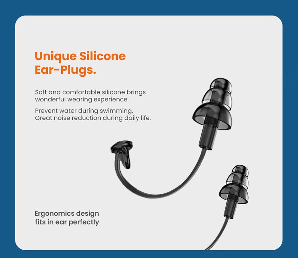 1. IP68 fully waterproof: swimming waterproof, reducing noise, soft silicone, more comfortable to wear