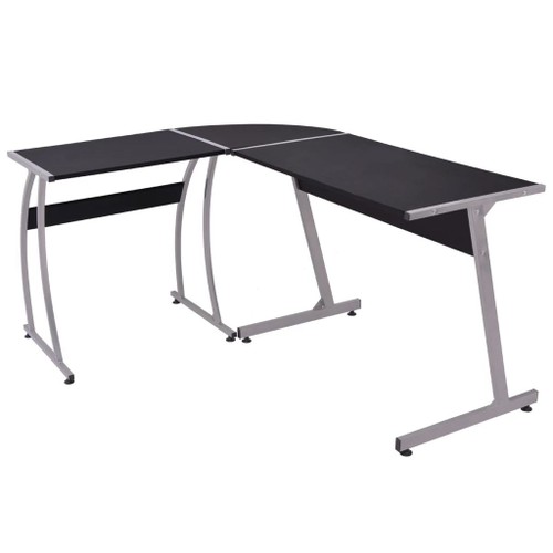This clean and sophisticated corner desk will make an ideal addition to your office or study. Made up of a durable metal frame and a high-quality chipboard tabletop, this corner desk is strong, sturdy and stable. The large L-shaped desk top is ideal for work or studying. It provides ample space for placing your computer, laptop, books, folders, documents, or photo frames, decorative objects, potted plants, etc.
