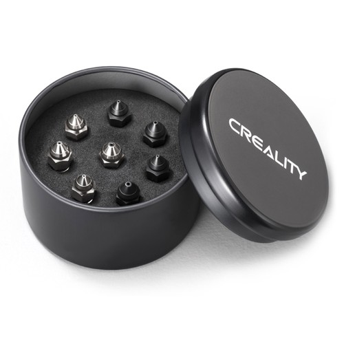 | Specification | Nozzle diameter: 0.4mm, 0.6mm, 0.8mm Compatible models: K1 , K1 Max, CR-M4 Note: incompatible with Creality K1C Copper Alloy Nozzle: Feature: High Thermal Conductivity Mohs Hardness: 6 High-Temperature Resistance: 500 Celsius Thermal Conductivity: 330W/m.k Inner Wall Roughness: Ra 0.4 Compatible Filaments: PLA, ABS, PETG, TPE, TPU, PC, and most other FDM materials, and PEEK, PEKK, PEI, PSU, PPSU, and other high-temperature consumables Hardened Steel Nozzle: |