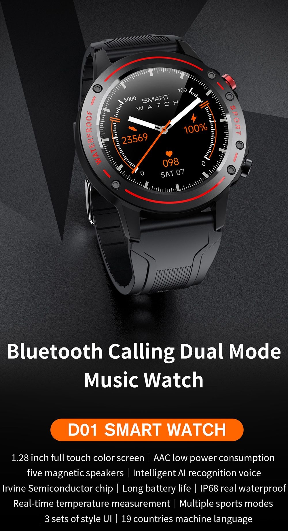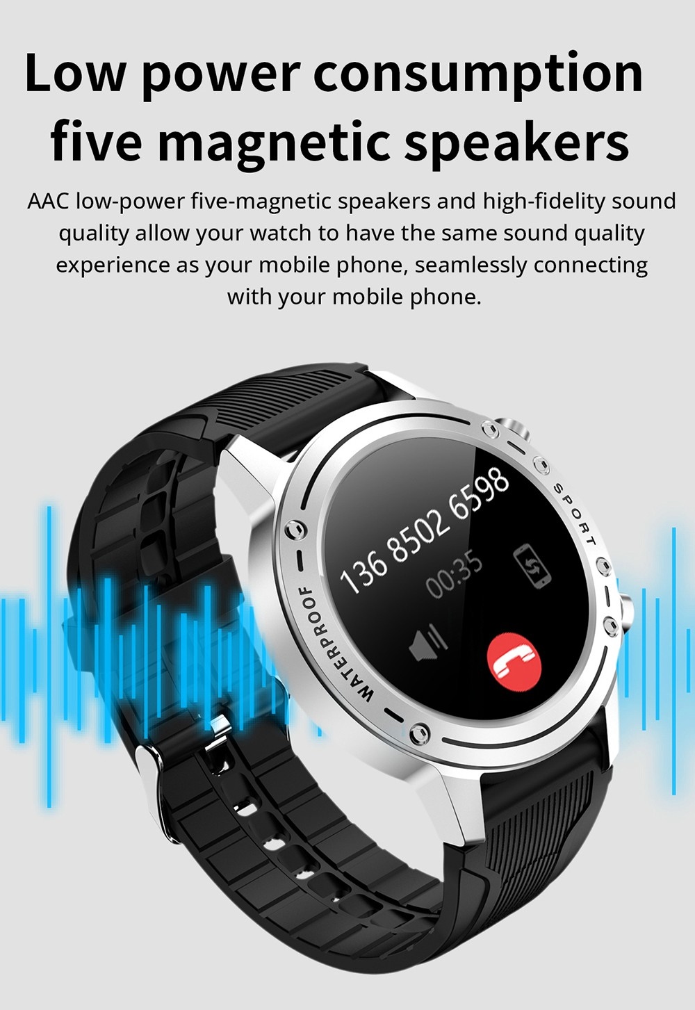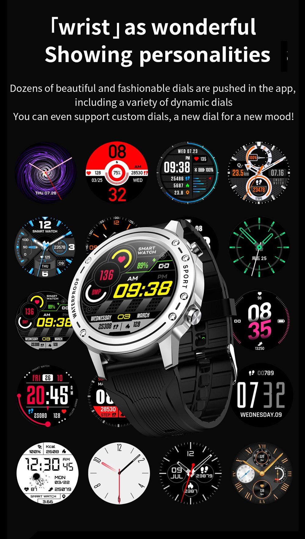 1. 1.28-inch full-touch color screen: It adopts a 1.28-inch full-circle colorful display, a highly sensitive touch screen, and the mirror is made of tempered glass material, which is scratch-resistant and wear-resistant.