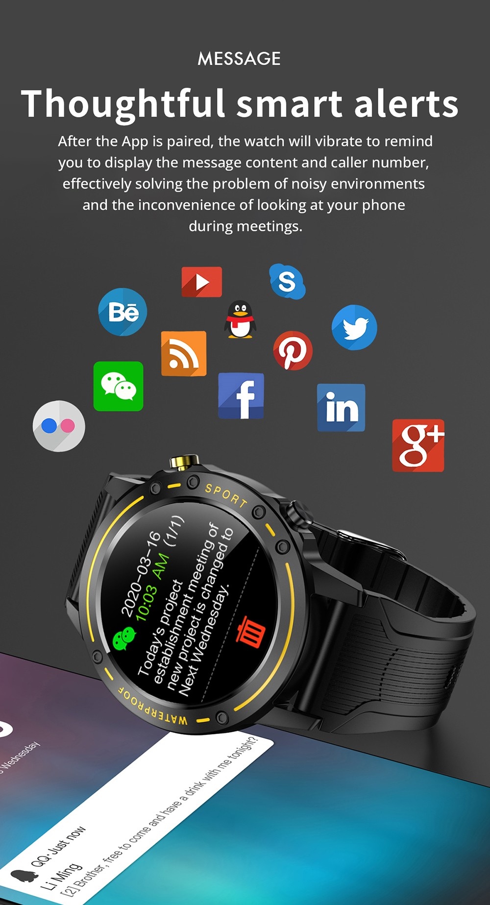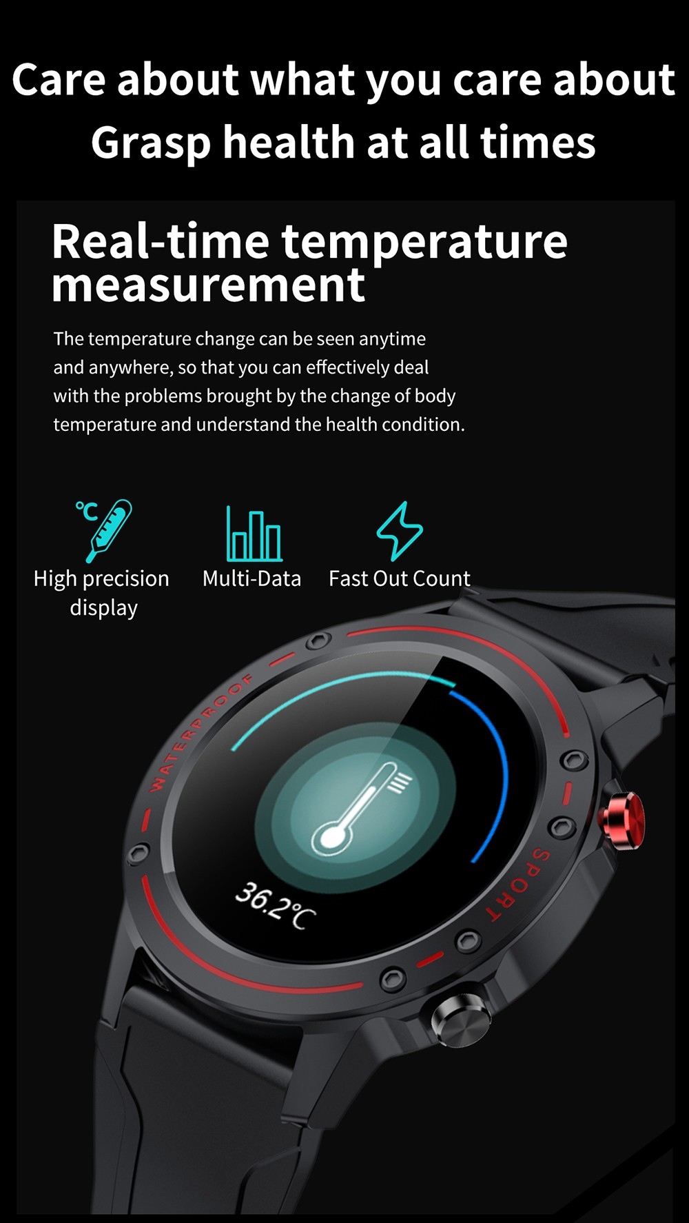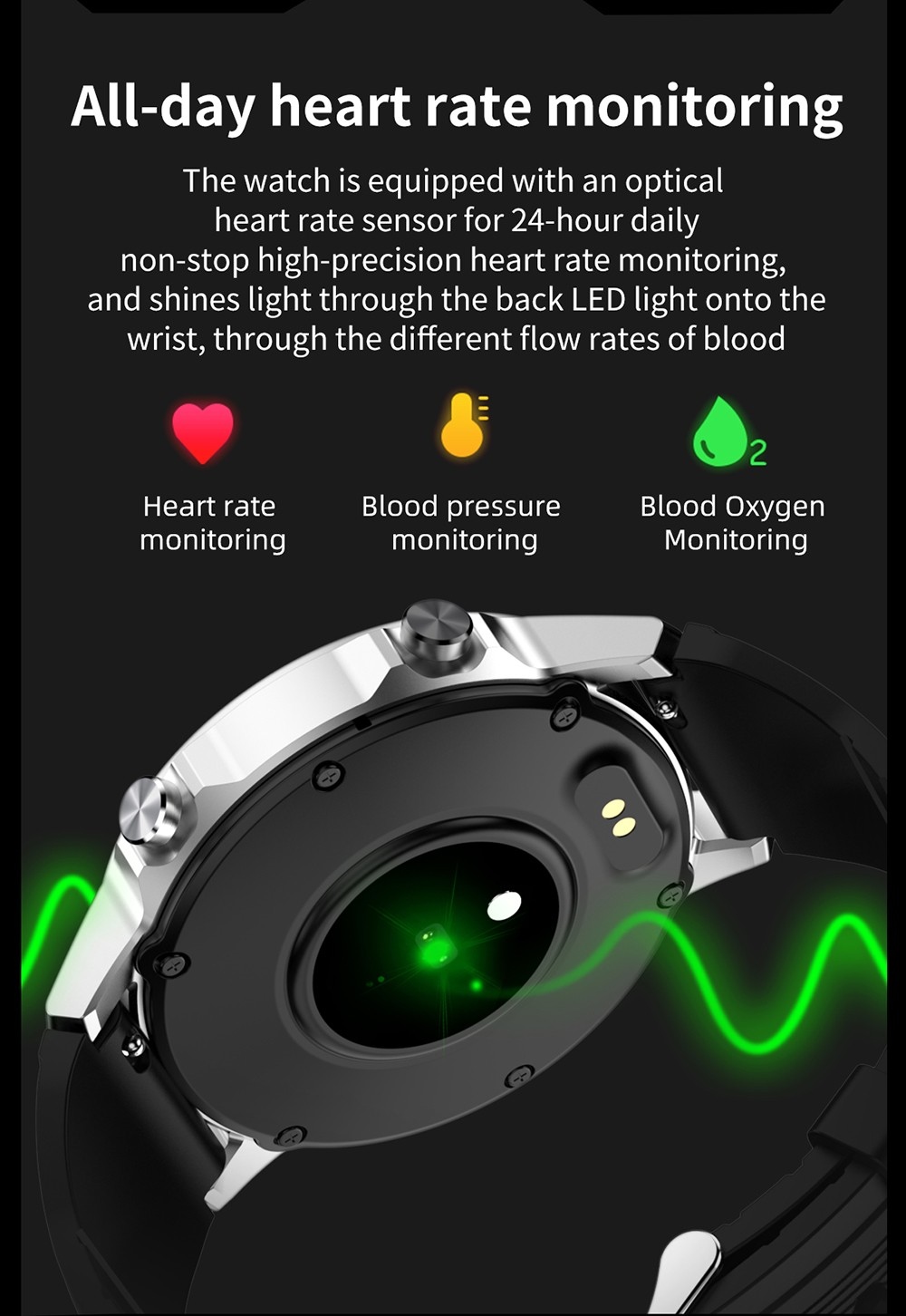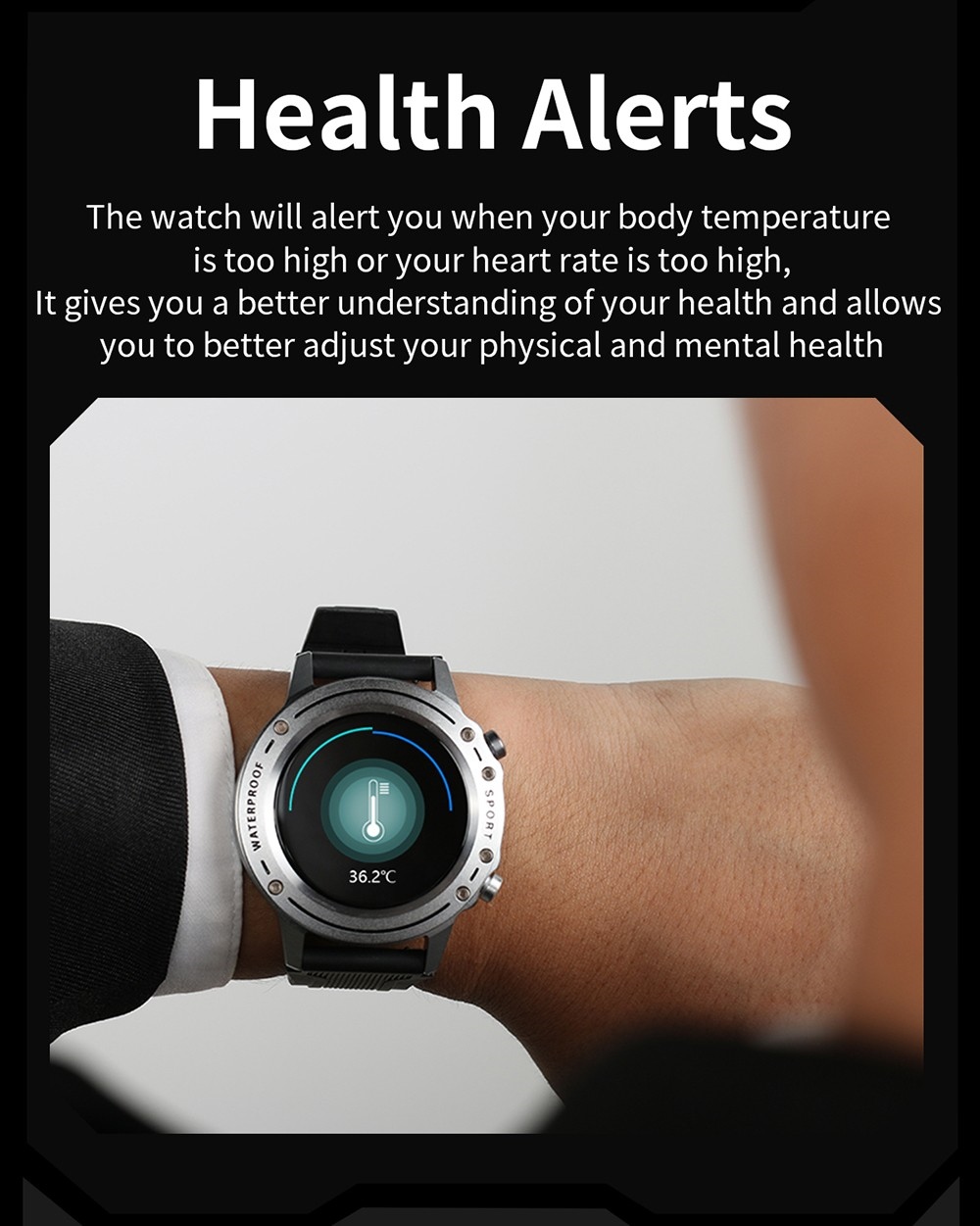 5. Health alert: When your body temperature is too high or your heart rate is too high, the watch will remind you to let you better understand your health status.