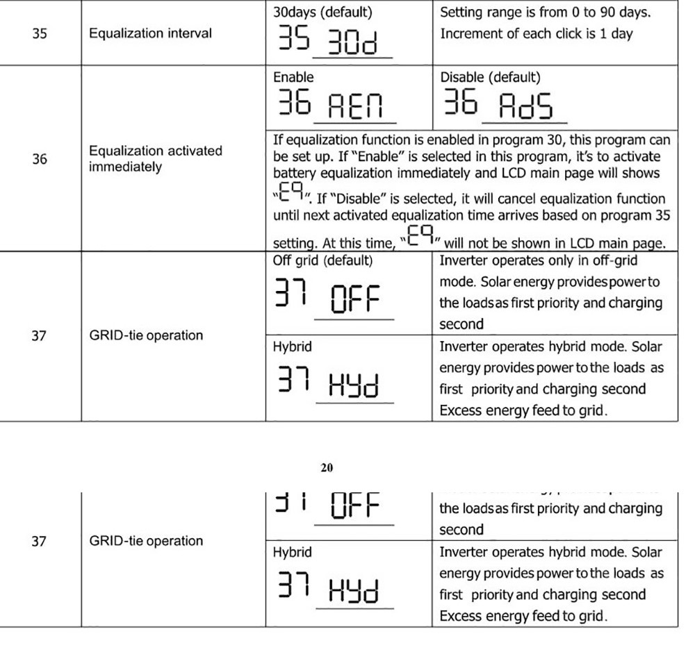 Phase: 1-phase Grid-tie Operation Two Load Output Power (V2.0): Off-grid Operation Battery Mode Output (AC): Battery & Charger: Operating Temperature: -10 - 50 Celsius |