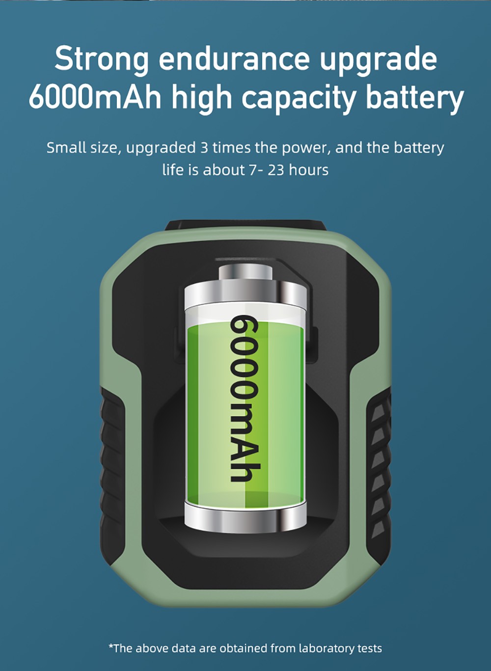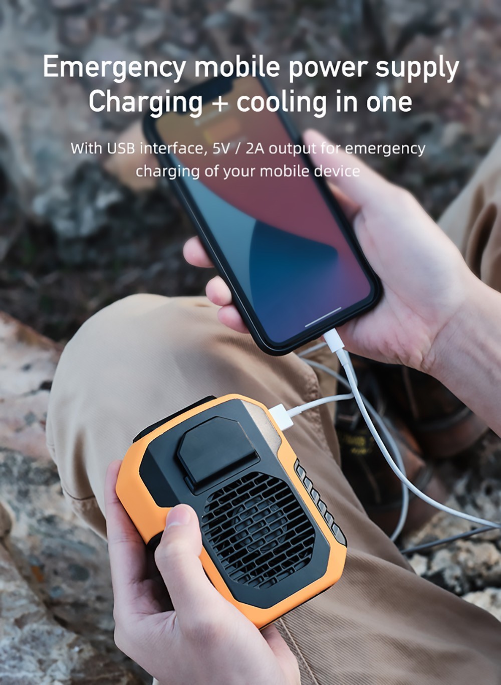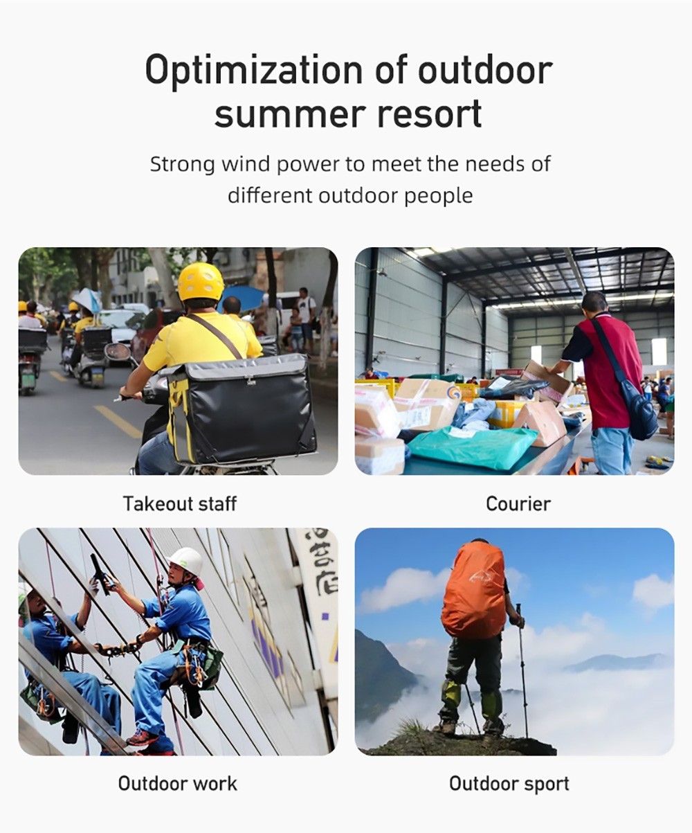 2. Equipped with a 6000mAh battery, this fan has a long battery life. With built-in USB output port, this mini fan can also be used as an emergency power bank, which is very convenient and durable.