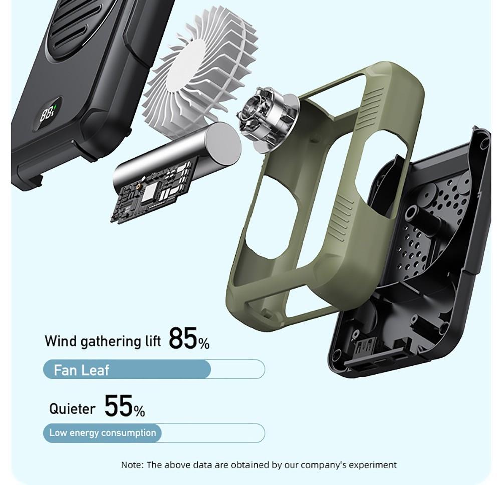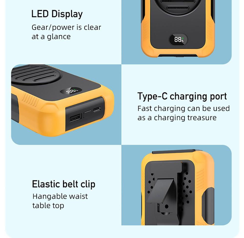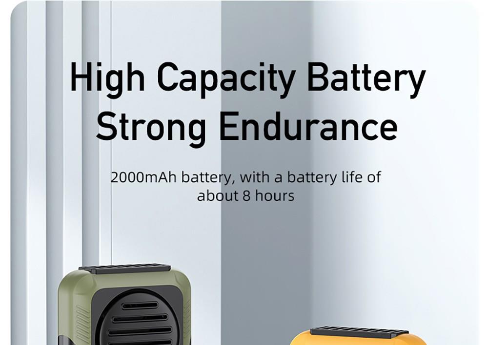 2. Equipped with a 2000mAh battery, this fan has a long battery life. With a built-in USB output port, this mini fan can also be used as an emergency power bank, which is very convenient and durable.