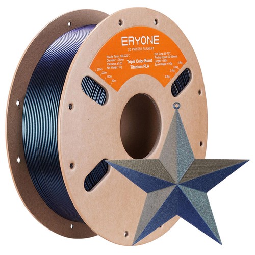 | General | Brand: ERYONE Type: 3D Printer Filament Model: Burnt Titanium Tri Color PLA Color: Blue & Golden & Green |