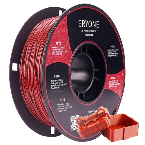 | Specification | Main Ingredients: PETG Filament Diameter: 1.75mm Tolerance: 0.03mm First Layer Print Temperature (°C): 230 Recommend Print Temperature (°C): 220-235 Recommend Print Speed(mm/s): 30-60 Recommend Heated Bed (°C): 80-90 Heat Deflection Temperature (0.45 MPa) (°C): 70 Recommend Storage Temperature(°C): 0-32 |