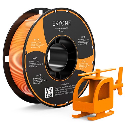 | Specification | Main Ingredients: PETG Filament Diameter: 1.75mm Tolerance: 0.03mm First Layer Print Temperature (°C): 230 Recommend Print Temperature (°C): 220-235 Recommend Print Speed(mm/s): 30-60 Recommend Heated Bed (°C): 80-90 Heat Deflection Temperature (0.45 MPa) (°C): 70 Moisture Absorption: Bad Recommend Storage Temperature(°C): 0-32 |