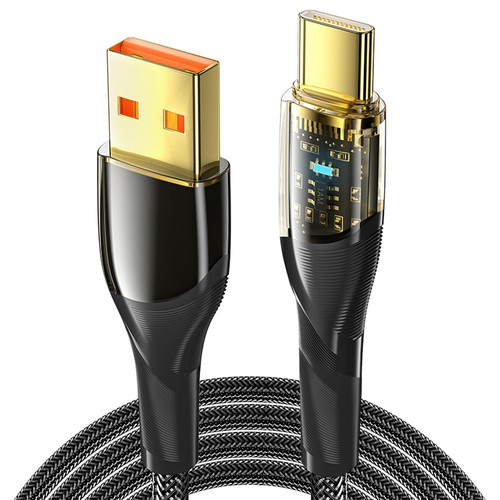 | Specification | Power: 100W Current: 7A Speed: 480Mbps Interface: USB-A To Type-C Weaving: Transparent Fishnet Thread Weaving |