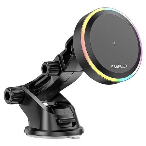 2. RGB colorful lights, a smart fan, a strong magnet, smart sensing, 360-degree rotation, and one-handed operation are the features of the ESSAGER car phone holder.