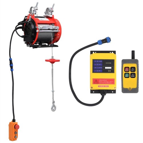 This electric hoist is easy to attach to scaffolding with its unique design and elegant shape. It makes the transport of building material, etc. to upper floors and roofs much easier and safer. Its powerful and maintenance-free motor is ideal for a wide range of lifting jobs. It is built to last, thanks to its robust construction and the improved gearbox. It has a 1,9 m cable remote control and an air socket for connecting the wireless remote control. The wireless remote control is included so that you can remain on the ground and do your heavy lifting with one hand. The steel rope is designed to reduce twisting. It has two using methods: You can use a single cable to lift a maximum 250 kg, or a double cable to lift a maximum 500 kg. Additionally, this electric hoist is also equipped with an emergency stop switch, an automatic brake and a thermal protection device to ensure your safety in lifting work.