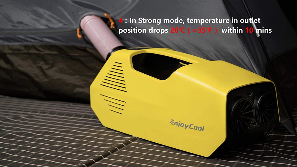 EnjoyCool Link air conditioner features a cooling capacity of 2380BTU, 140m3/h air circulation, and a LED control panel that can display the temperature. Thus, it is perfect for RV trips, barbecues and family gatherings on a hot summer day.