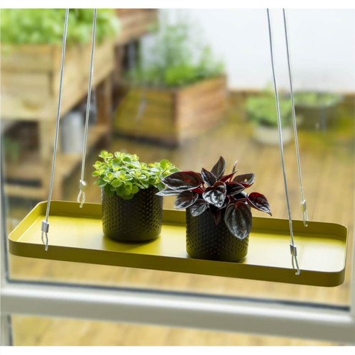 With this small golden hanging plant tray by Esschert Design, a green window is easily created. Fade the lines between indoor and outdoor by hanging this rectangular decorative tray and provide it with (hanging) plants. It is ideal to combine with the Esschert Design BPH136 S hook.