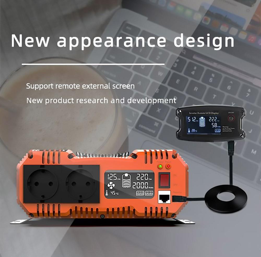 This 2500W pure sine wave inverter has an LCD display that shows battery ratio, battery (DC) voltage, alternating (AC) voltage, alternating power, and inner temperature. Furthermore, the cooling fan and protection indicators will be displayed when it is over the temperature and load limitation.