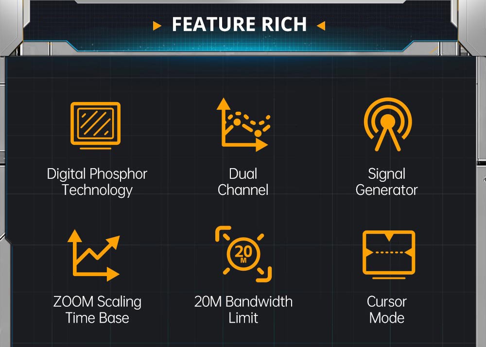 | Package Contents | 1 x Digital Oscilloscope 2 x 200m probe 1 x Charger 1 x USB Data Cable 1 x User Manual |