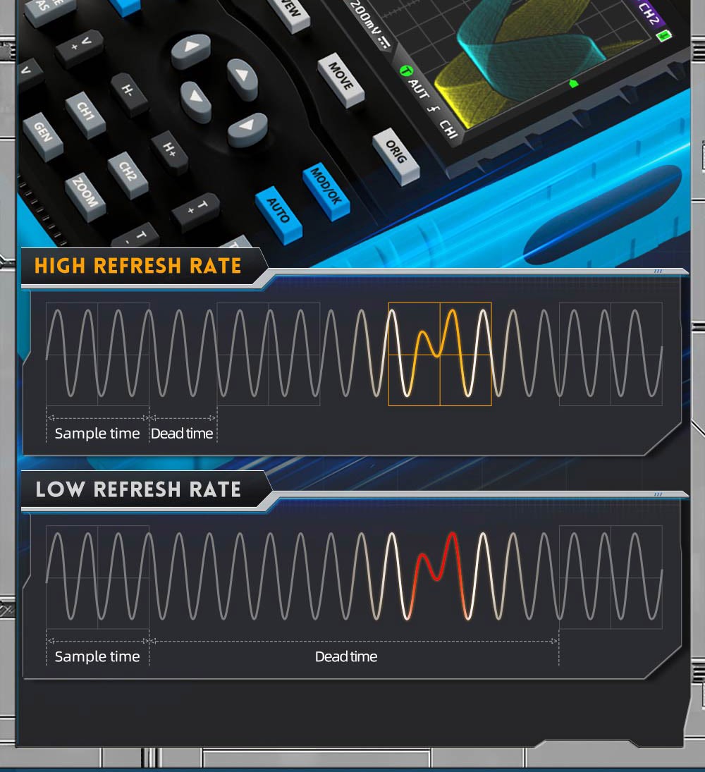 Ultra-high signal-to-noise ratio, fully sealed shielding measures, stable circuit feedback design, making the waveform clean and clear. The original adjustable automatic bandwidth limit and adaptive adjustable trigger suppression are suitable for analyzing and measuring signals with relatively large noise.