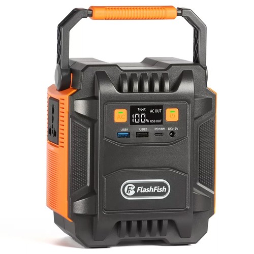 Flashfish A201 has 2 x AC outputs (100-240V/200W, peak 400W), 1 x DC output (12 V/10 A), 1 x PD Type-C output (18 W), 1 x USB-1 output (5 V/2.4 A, 9 V/2 A, 12 V/1.5 A), 1 x USB 2 output (5V/2.4A), which can be used to power CPAP devices, drones, mobile phones, tablets, cameras, mini fans, etc.