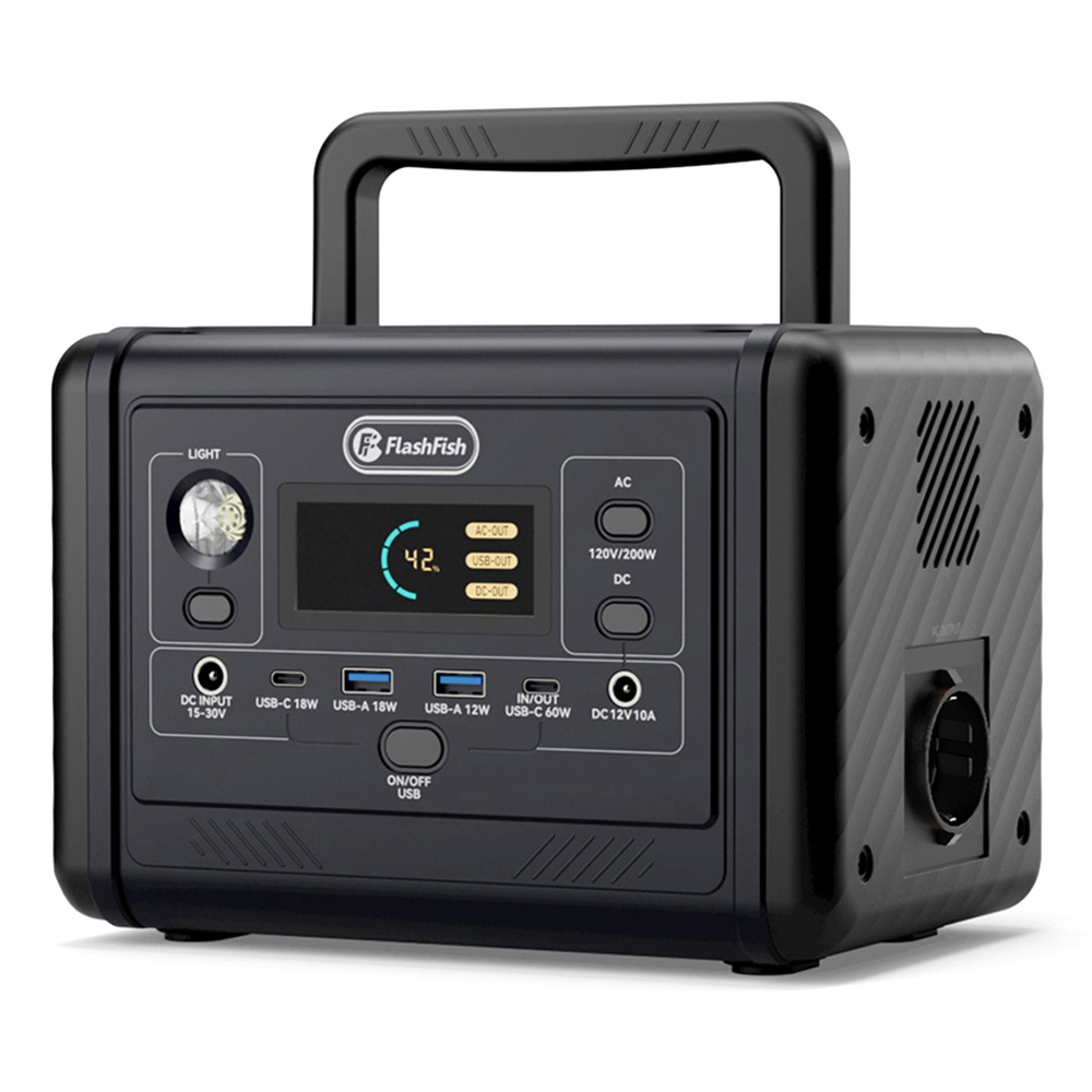 Equipped with a 48000mAh/153.6Wh lithium iron phosphate (LFP) battery—boasting longer cycle life and stronger thermal stability. Its 200W rated power reliably fuels small outdoor appliances and digital devices for extended periods, eliminating battery life anxiety.