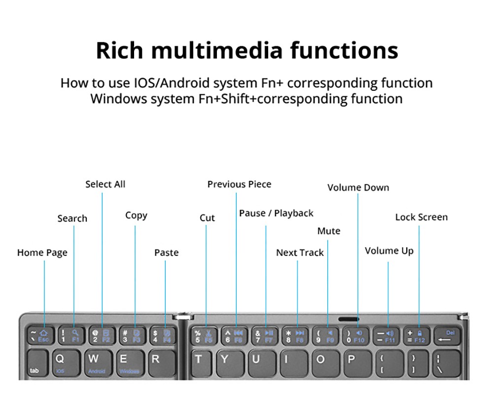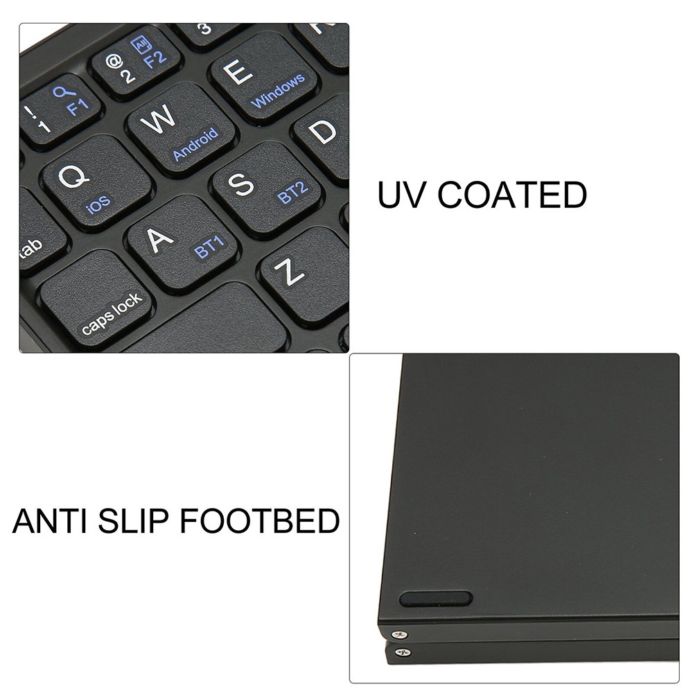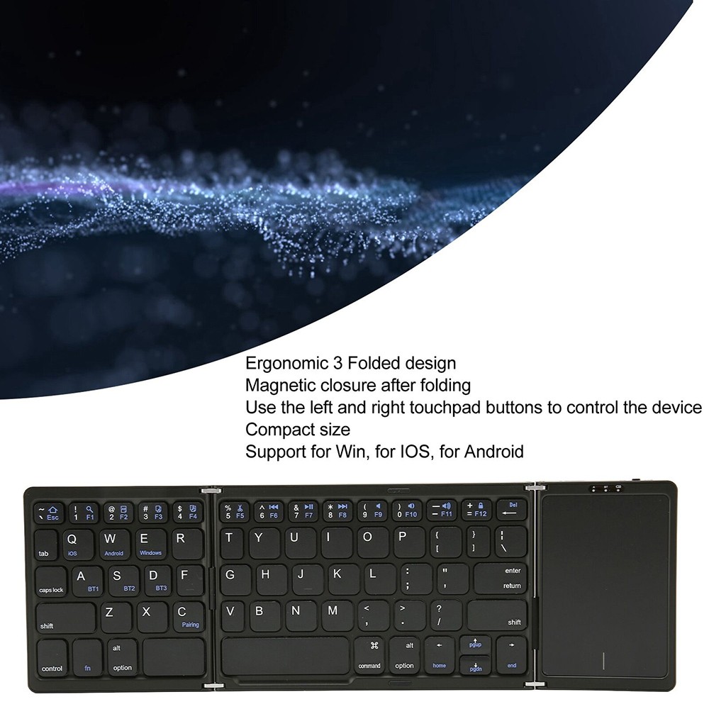1.  Foldable Design: Foldable keyboard has a 3 folded design, with a strong folding part and a magnetic closure after folding