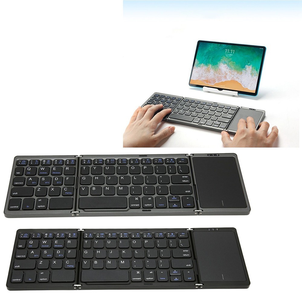 Foldable Bluetooth Wireless Keyboard Rechargeable with Touchpad for Windows, iOS, Android Tablet, Smartphone - Grey