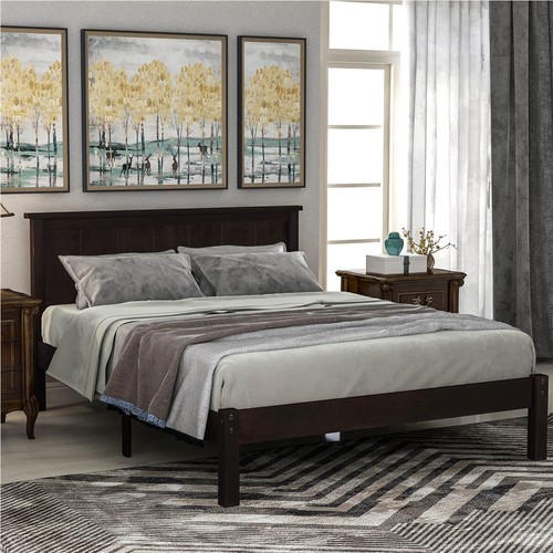 Enjoy this beautiful wood platform bed with strong mattress support, no box spring needed.