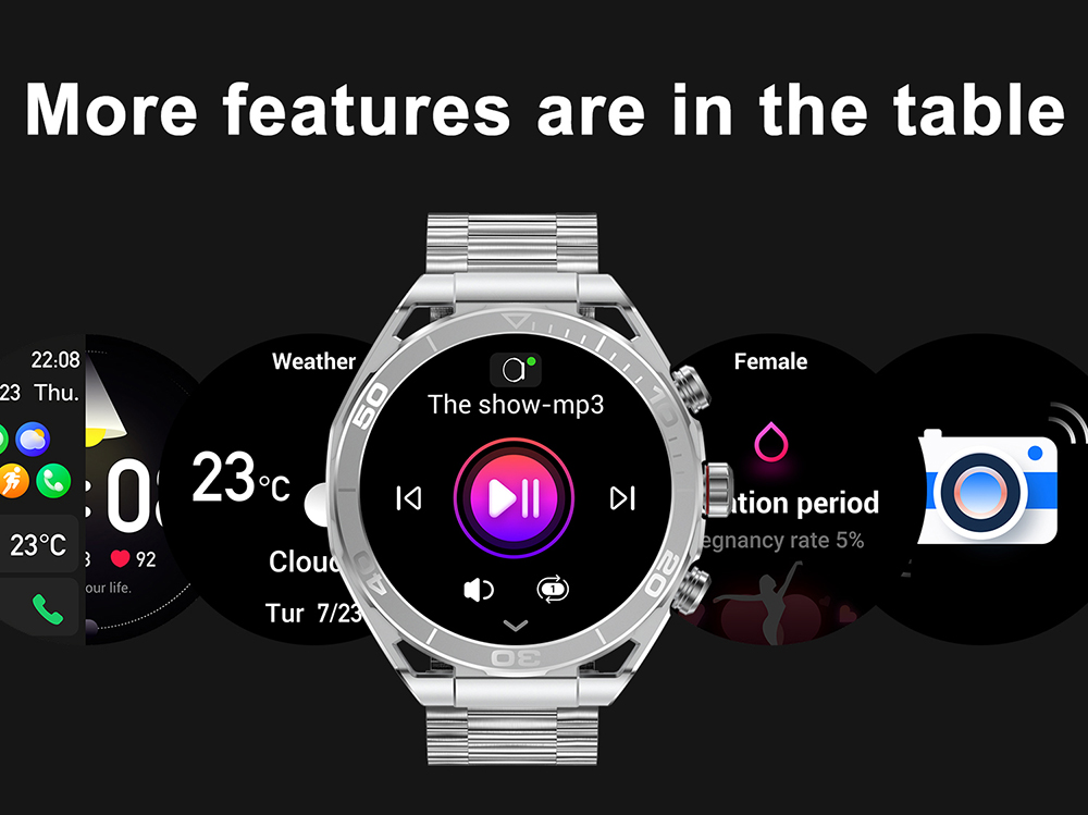 Call function, heart rate measurement, blood oxygen measurement, blood pressure measurement, weather information, sleep information |