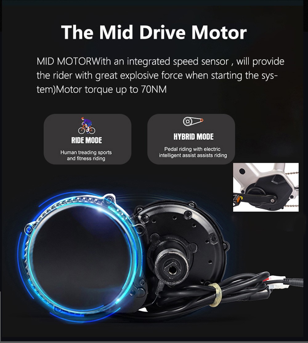 250W mid-mounted motor maintains the front and rear balance of the electric bicycle to the greatest extent, and will not affect the shock absorption, and the motor will be less impacted by the road surface on bumpy roads.