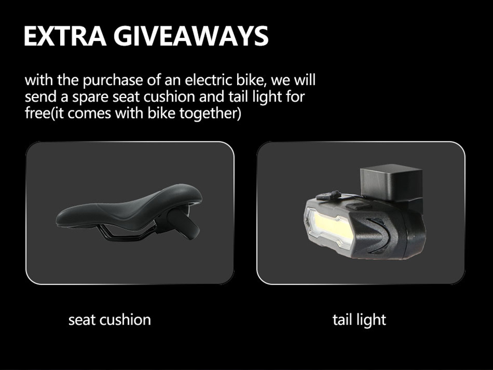 | Specification | Frame: Aluminum alloy frame Battery: 36V 9.6Ah Motor: 36V 250W Transmission: Shimano Brake: Mechanical disc brake Tire: 700C*32C Waterproof: IP54 Max Climb: 25 degree Charging Time: 5-6h Load: 100kg Max Speed: 32km/h Applicable Height: 165-190cm Help Battery Life: 60-80km Motor Torque: 30nm |