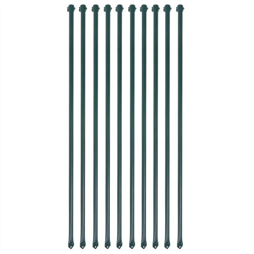 This garden post set is ideal for any garden to secure trees, shrubs, vines, and other plants. These posts are made of heavy-duty metal, which makes them very strong and durable. Thanks to the green-coated surface, the posts are rustproof and water repellent. Delivery includes 10 garden posts.