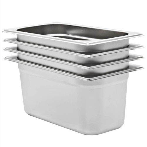 These stackable Gastronorm containers will be great additions to your kitchenware. Made of strong stainless steel, the steam table pan has a solid construction and is easy to clean. The hardwearing material makes it scratch-free and easy to maintain. The food pan features the standard Gastronorm dimensions, thus allowing universal use and a wide range of combinations. Consequently, it fits perfectly in all your professional kitchen cabinets and equipment like bain-marie, chafing dishes and salad bars. The cookware is stackable and can be hidden away to save space, therefore it is very practical and ideal for using in restaurants, hotels, parties, as well as at home. Delivery includes 4 pans.