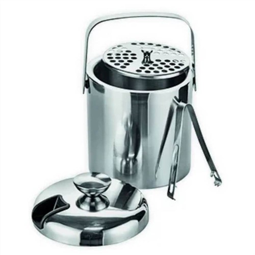 Fill the HI ice bucket with ice and drinks for a party, dinner or use it as a handy accessory for your home bar. The lid has a convenient opening for the tongs, and the bucket has a handy grid at the bottom for keeping the melt water and ice cubes separated. With the lid closed, your ice cubes will last longer The bucket is made of glossy stainless steel and an ice cube tongs is included in delivery.