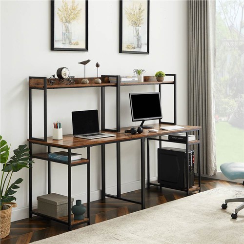 There is a double-layer shelf on each side of the table, which is used to store books, computer mainframe, game CDs, and all office accessories.