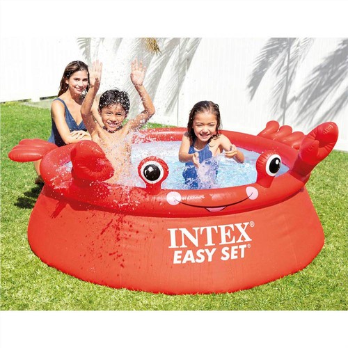 The INTEX Easy Set happy crab inflatable pool is an outdoor swimming pool and is ideal for keeping your children cool on a hot summer day! Fun design: This round pool features a crab design in red colour, which makes the inflatable pool look fun, cheerful and playful.Easy set-up: Simply place the pool on a flat, level surface, inflate the tube and pour water. The Easy Set pool is ready to welcome your little ones and cool them down within minutes.Premium material: Thanks to its 3-layer system, which has a polyester mesh in between, this paddling pool is also resistant to punctures and holes.