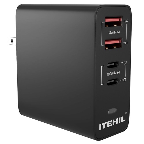 ITEHIL 100W USB-C fast charging wall charger's large output achieves providing higher power to your laptop.