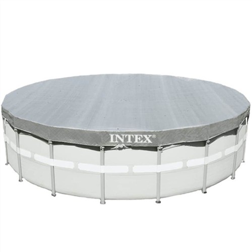 This Intex Deluxe pool cover 28040 keeps your pool free of dirt, insects, and other debris when it is not in use. Made of high-quality polyethylene, the cover is tear- and UV resistant and water-repellent. Thanks to the small drain holes, our pool cover allows rain water to go through instead of accumulating on top. The small drain holes also ensure ventilation. Our swimming pool cover can be firmly attached to the pool with included rope ties.