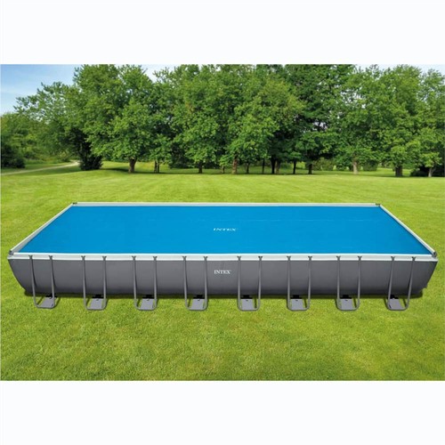 This Intex solar pool cover 29030 directly sits on the water surface, within the pool's edges, and can keep pool water warm, depending on the amount of direct sunshine. With PE air chambers all over its surface, it has excellent heat-retaining properties. At the same time, it helps reduce the use of chemicals, as well as water evaporation. It can be easily attached or removed from the pool. A carry bag is also included in delivery.