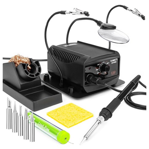 | Package Contents | 1 x Electric Soldering Station 1 x Soldering Iron 1 x Advanced Soldering Iron Holder 1 x Lead-free Solder Wire 10g 5 x 900M Soldering Iron Tips 1 x Copper Wire Cleaner for Soldering Iron Tip 1 x Magnifier 3 x Tool Holder 1 x Welding Table Workbench 1 x User Manual |