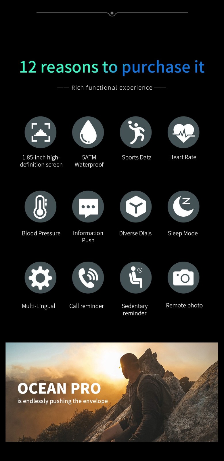 2. 5ATM waterproof, washing hands, raining, swimming and wearing to meet all daily requirements