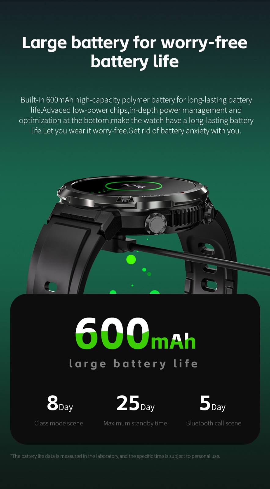 6. 600mAh large battery, up to 15 days battery life