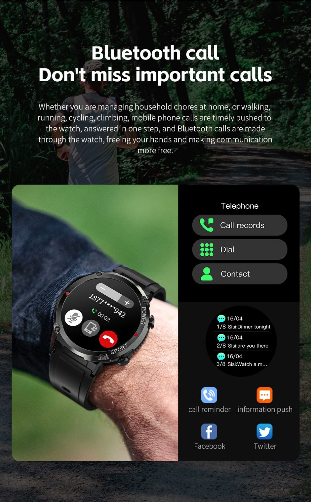 3. Support Bluetooth calls, never miss any important call with your watch