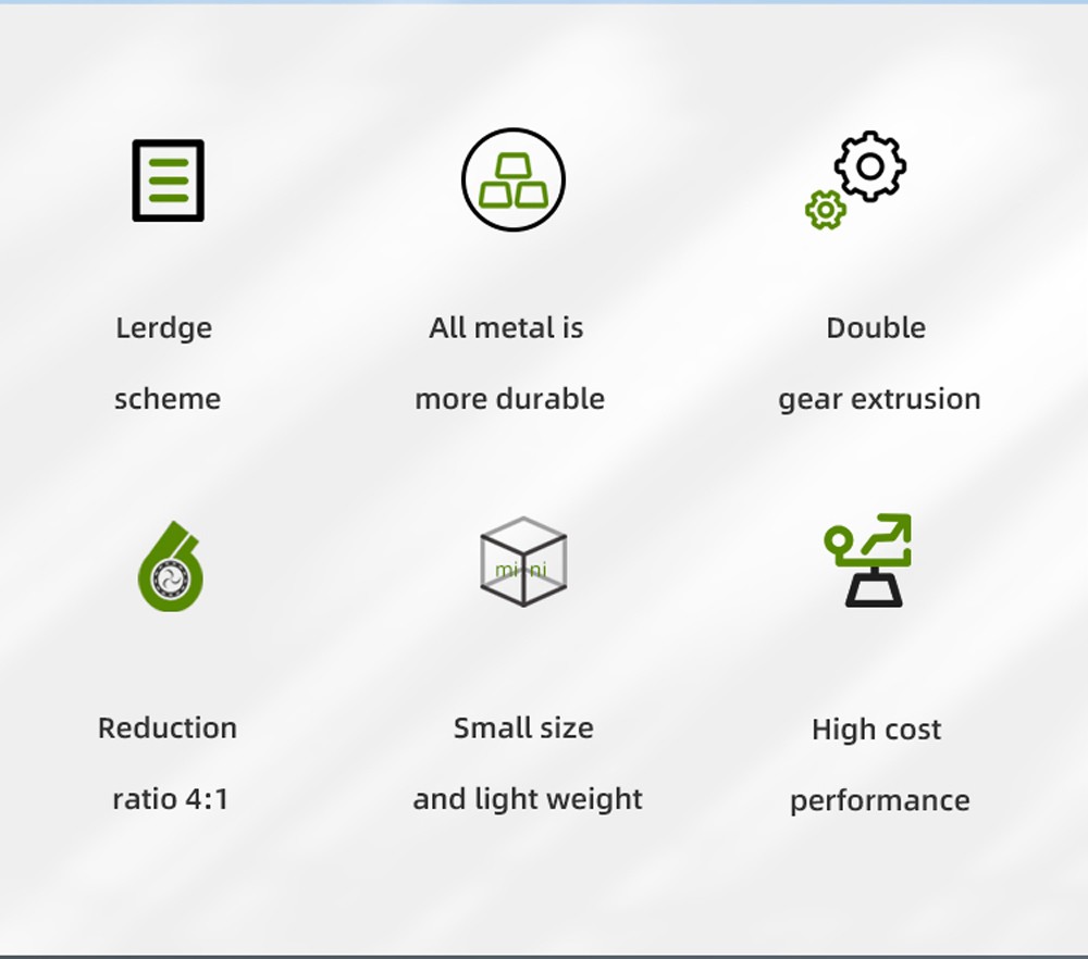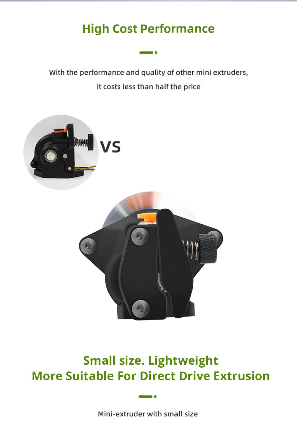 4. Small size and lightweight design, more suitable for direct extrusion, making the print head lighter and more flexible, improving printing quality and printing speed.